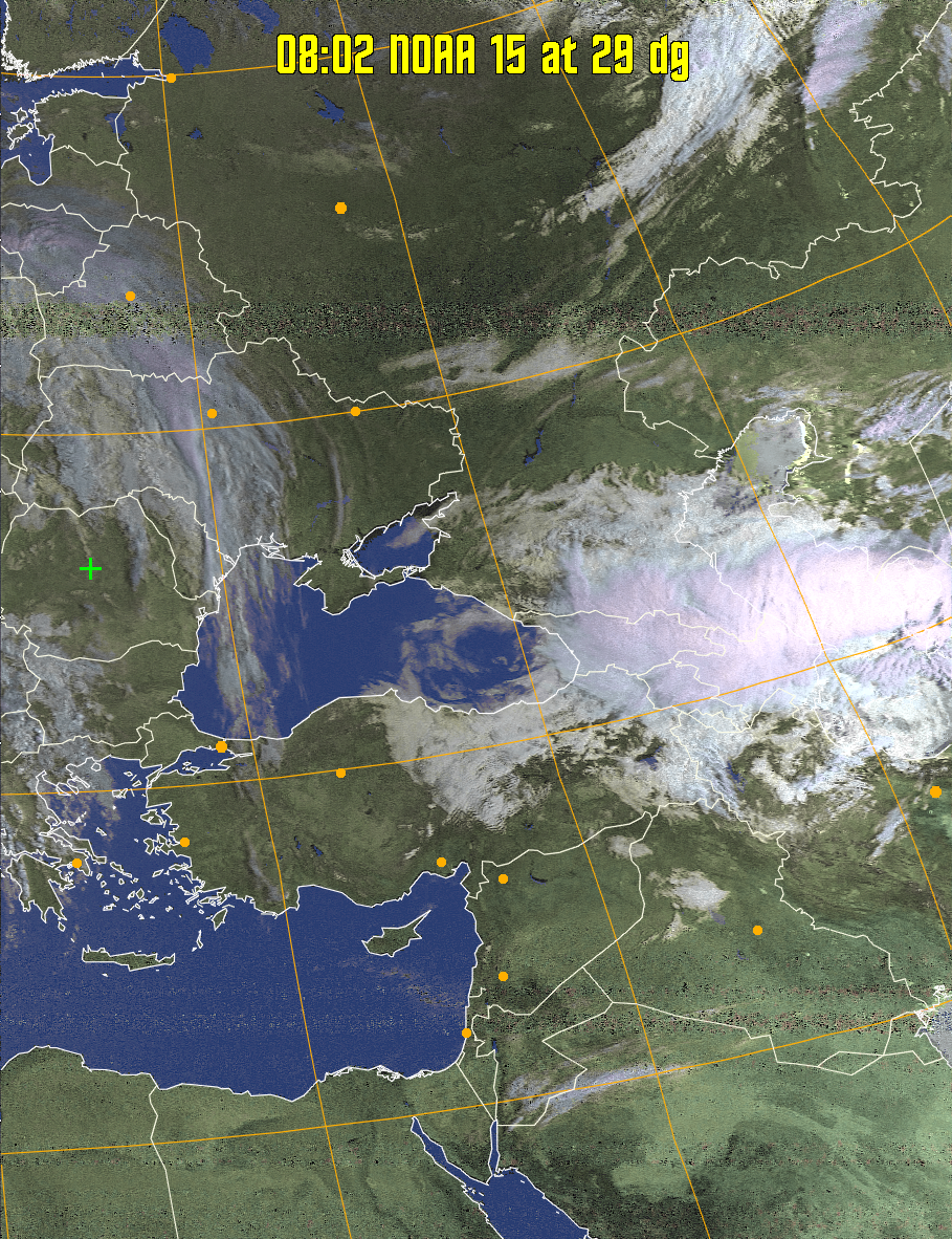 Satellite: NOAA 15 Pass Start: 2025-04-16 05:02:36 UTC Pass Duration: 14:17 Elevation: 29 Azimuth: 95 Direction: southbound Gain: 11.2 rtl_fm Gain: 40